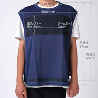 上肢の可動に制限を伴う方に向けた「歩行」と「外出」を自立支援する衣服です。また、車椅子を利用している場合の手の挟み込みや車輪への巻き込みを防ぎ、介助者がいる場合は「移乗」も支援します。サイズは男女兼用フリーサイズです。