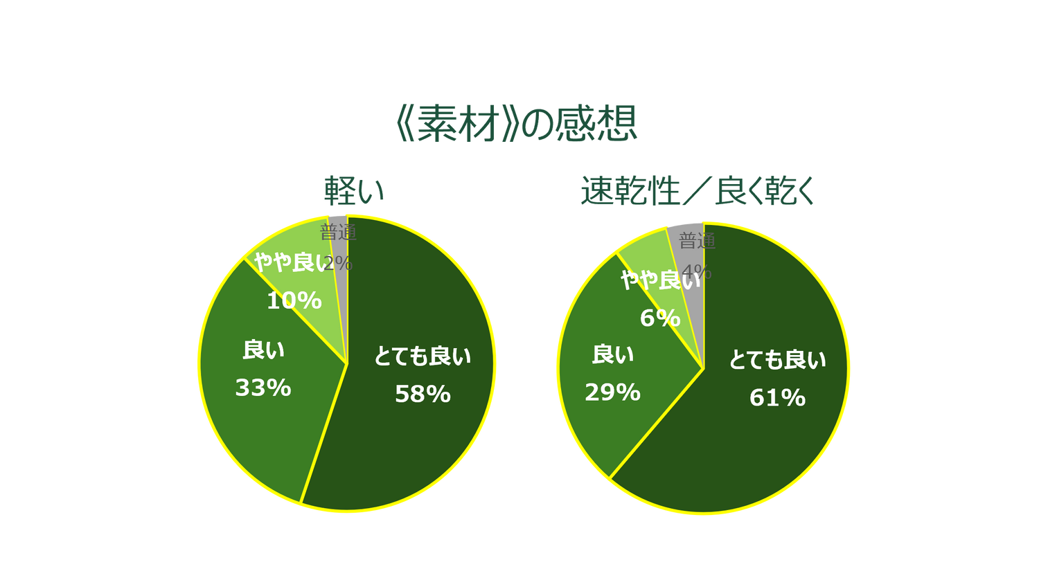 96%以上が素材の「軽さ」「速乾性」を高く評価