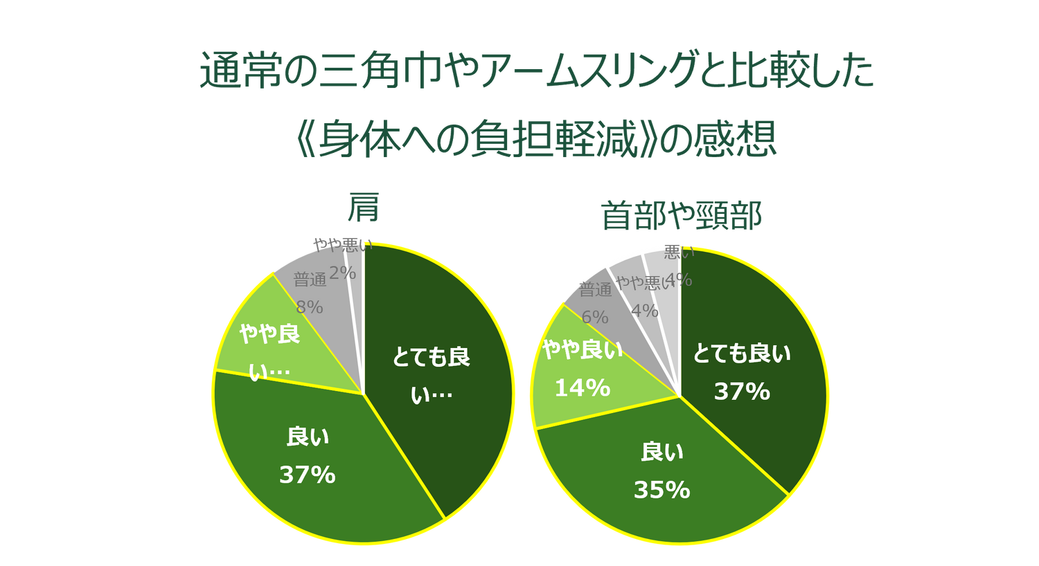 従来の三角巾やアームスリングに加えて、患者様の選択肢を増やしたいと考えて今回のモニターに応募させていただきましたが、実際に長期的に使用したいというお声もいただき、当院でも購入を検討中です。ありがとうございました。