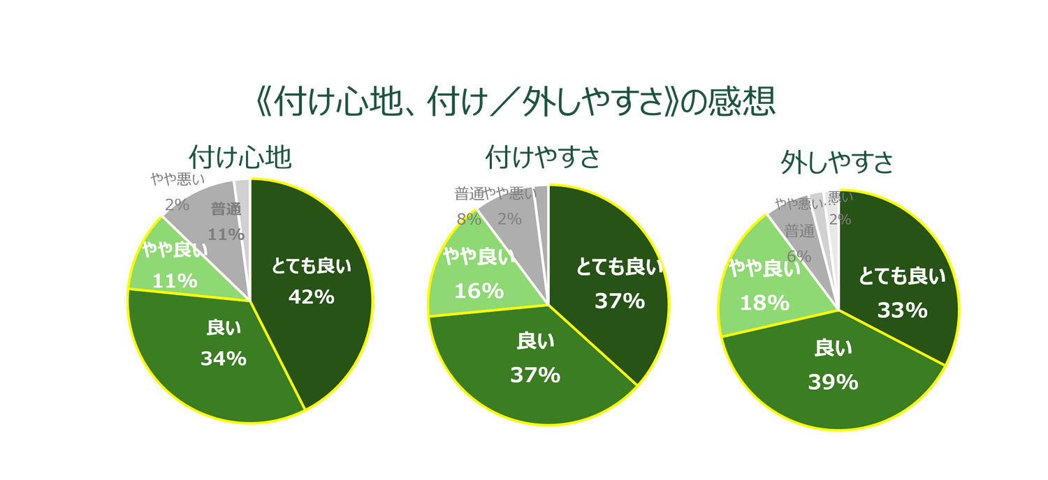 - 90%が「付けやすさ」「外しやすさ」を高評価
